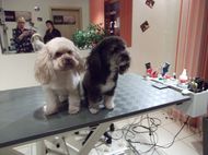 3. Wie ist der Salon eingerichtet? Zum Beispiel sollten Badewanne, Sterilisator, Fön, Trimmtische, Scheren, Coat Kings und Trimmesser vorhanden und Profiwerkzeuge sein. Und kein Eigenbau. -> siehe Der Salon